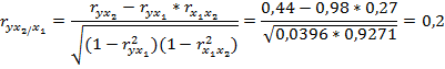 При закреплении фактора x2 на постоянном уровне корреляция у и х1 оказывается несколько выше (0, 99 против 0, 98).