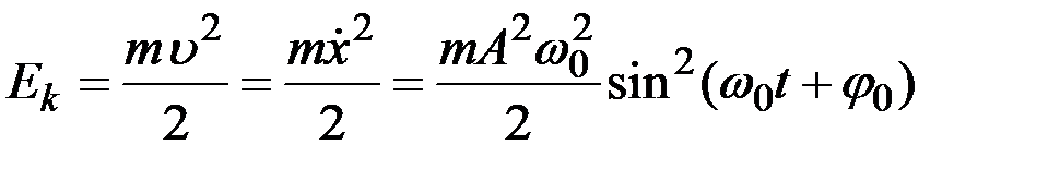 где А – амплитуда колебания, то есть максимальное отклонение колеблющегося тела от положения равновесия; w 0 – круговая (циклическая) частота; (w 0 t + j 0) – фаза колебания в момент времени t; j 0 – начальная фаза колебания. Круговая частота где Т – период колебаний, то есть время одного полного колебания. Так как Кинетическая энергия колебаний пружинного маятника:
