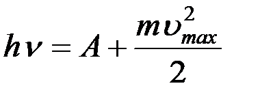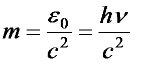 Из этого уравнения следует, что максимальная кинетическая энергия фотоэлектрона линейно возрастает с увеличением частоты падающего излучения и не зависит от его интенсивности, то есть от числа фотонов. Так как с уменьшением частоты света кинетическая энергия фотоэлектронов уменьшается, то при некоторой частоте n = n 0 кинетическая энергия фотоэлектронов станет равной нулю и в этом случае энергия фотона hn 0 равна работе выхода А, из чего следует, что n 0= А / h (частота n 0 носит название красной границы фотоэффекта). При частоте n< n 0 фотоэффекта не будет. Масса и импульс фотона. Согласно квантовой гипотезе Планка-Эйнштейна, распространение света можно рассматривать как поток частиц – фотонов, энергия которых e 0 =hn. Тогда из уравнения Эйнштейна взаимосвязи массы и энергии E=mc2 следует, что масса фотона: