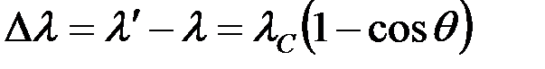 электроном, было получено следующее выражение для увеличения длины волны фотона при его рассеянии на свободных электронах: