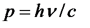 Поскольку фотон движется со скоростью света с, то импульс фотона р: