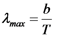 Закон смещения Вина. Из экспериментальных кривых зависимости функции rl, T от длины волны l при различных температурах (рис. 12) следует, что распределение энергии в спектре черного тела является неравномерным. Все кривые имеют выраженный максимум, который по мере повышения температуры смещается в сторону более коротких волн.