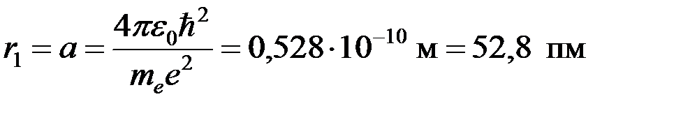 где e – заряд электрона, ε o – электрическая постоянная, а – радиус первой орбиты (n = 1), называемый первым боровским радиусом, который равен: