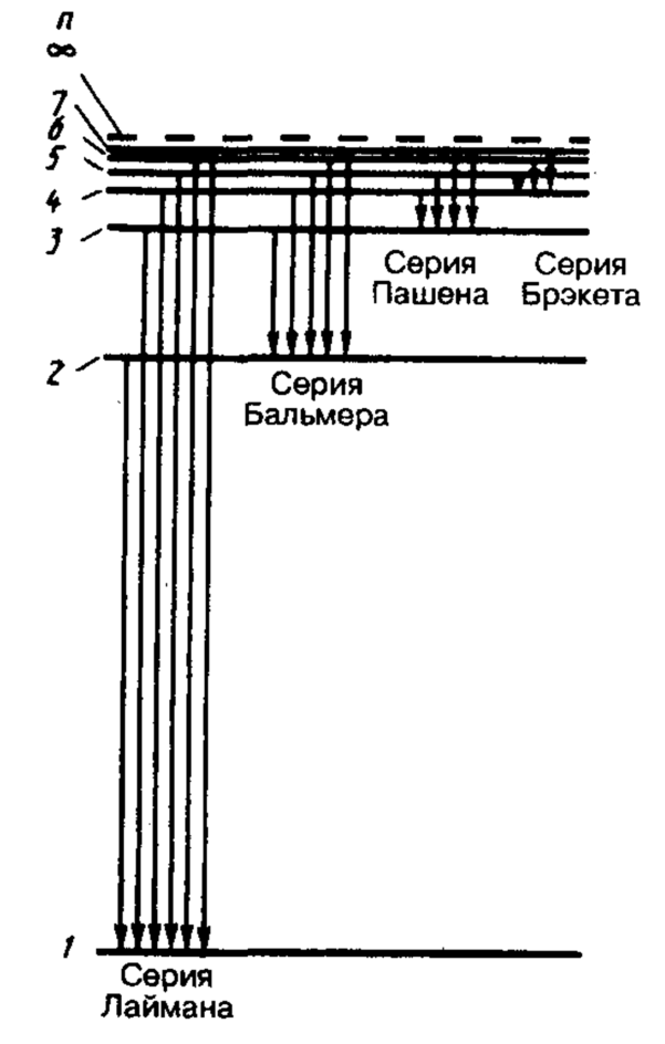 np → 1 s (n = 2, 3, …); в серии Бальмера – переходам: np → 2 s, ns → 2 p, nd → 2 p (n = 3, 4, …) и т. д.