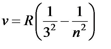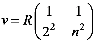 где R – постоянная Ридберга ( Числа m (m = 1, 2, 3 …) и n (n = m + 1, m + 2, m + 3, …) определяют номера электронных орбит в атоме, между которыми происходит квантовый переход. Приведенная формула описывает серии линий в спектре испускания атома водорода (рис. 13), где m определяет серию (m = 1, 2, 3…), а n определяет отдельные линии соответствующей серии (n = m + 1, m + 2, m + 3, …).