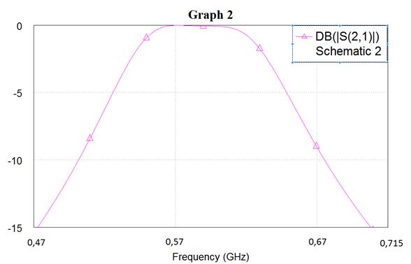 g0=1 g1=1.3028 g2=1.2814 g3=1.9761 g4=1.8468 g5=1.5386 Где g0 = Rэ, g5 = ρ, а g1 и g2 должны равняться выходной емкости и индуктивности транзистора соответственно.
