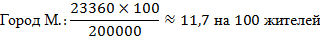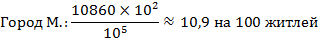 Возраст от 15 до 49 лет: Город Н.: 100 – 6 100000 – х х=6000 Город М.: 100 – 6, 4 100000 – х х=6400