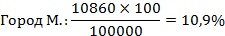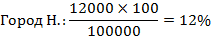 Всего: Город Н.: 100 – 12 200000 – х х=24000 Город М.: 100 – 10, 9 200000 – х х=21800
