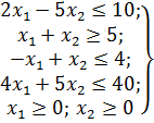 Условия неотрицательности переменных ограничивают область допустимых решений в I квадрате.