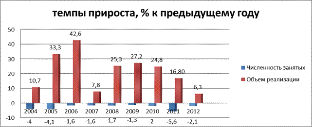 Рассчитано по данным [70, с.353; 24, с. 47]. Анализ данных, характеризующих структуру количества, численности занятых и объемов реализации по субъектам предпринимательства за 2004-2012гг. (табл.2.3), показал, что количественно преобладают субъекты предпринимательства - физические лица (их доля изменилась от 77% до 87%), но по численности занятых и объемам реализованной продукции значительно выше доля предприятий-субъектов предпринимательства. Так в 2012г. удельный вес предприятий в количестве субъектов предпринимательства составил 22, 8%, тогда как доля в численности занятых и объемах реализации 77, 1% и 94.3% соответственно. Т.е. предприятия по-прежнему остаются более эффективной формой организации деятельности субъектов хозяйствования. Они способствуют повышению занятости населения, использование производственных мощностей, эффективному использованию ресурсного потенциала, расширению рынков реализации конкурентоспособной продукции. Таблица 2.3 Структура основных показателей деятельности по субъектам предпринимательства, 2004-2012гг.