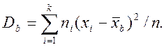 где ni - частота варианты; n - объем выборки. Замечание. Выборочная средняя будет также обозначаться и без нижнего индекса: Выборочная дисперсия представляет собой среднюю арифметическую квадратов отклонений вариант от их выборочной средней: