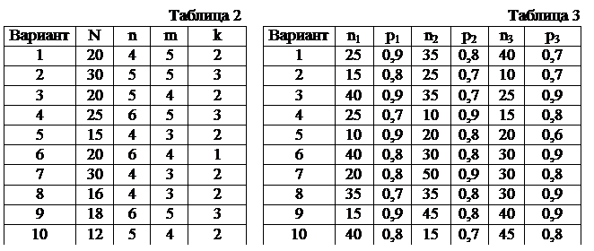 1.1. В партии из N изделий n из них имеют скрытый дефект (табл. 2). Какова вероятность того, что из взятых наугад m изделий k изделий являются дефектными?