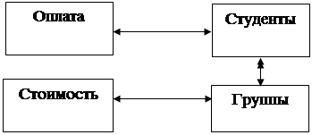 Рисунок 2- Студенты-Группы Между этими сущностями имеется связь имеется связь «один-ко-многим». Несколько студентов могут входить в состав одной группы. 3) Связь «Стоимость-группы» показана на рисунке 3.