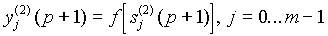После этого полученными значениями инициализируются значения аксонов второго слоя: yj(2) = yj(1), j = 0...m-1 (8) 2. Вычислить новые состояния нейронов второго слоя:
