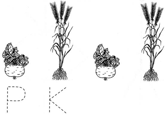 Рис. 28. Образец изображения репы и колоса из счетных палочек.