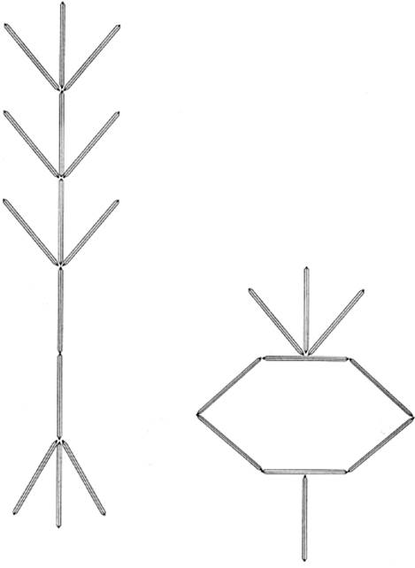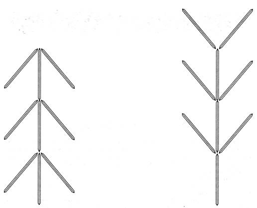 Рис. 38. Образец изображения елки и осины на счетных палочках.
