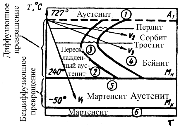 Рис. 8.7. Схемы диаграммы изотермического превращения переохлажденного аустенита: