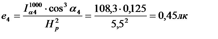Условная освещенность контрольной точки А от 4-го светильника со световым потоком в 1000лм: