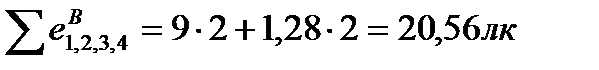 Определим общую условную освещенность контрольной точки В от светильников 1, 2, 3, 4: