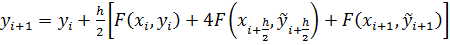 Полученное выражение является неявным, так как в правой части содержатся еще не определенные значения функции yi+h/2и yi+1. Чтобы воспользоваться этой формулой, надо использовать некоторое приближение для вычисления этих значений