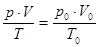 Измеренный объем водорода при атмосферных условиях (p, T) пересчитывается на нормальные условия по уравнению Клапейрона (2):
