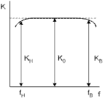 К - модуль коэффициента усиления усилителя φ - разность начальных фаз сигнала проходящего через усилитель. На рис 2.16. представлены основные характеристики усилителя. Зависимость модуля коэффициента усиления усилителя от частоты носит название амплитудно-частотной характеристики (рис 2.16. а). Как видно из