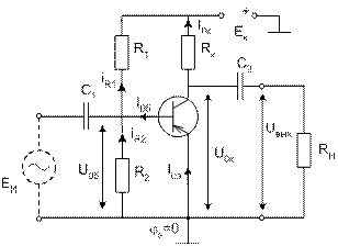 При отсутствии входного сигнала через транзистор протекает постоянный ток и для любого момента времени для выходной цепи можно записать: