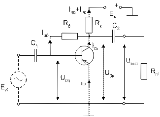 Рис. 2.17. Усилительный каскад на транзисторе по схеме с ОЭ
