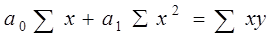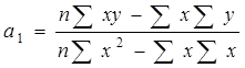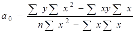 Виходячи із наведеної системи, параметри a0 та a1 можна визначити за формулами: