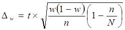 Отже, з імовірністю 0, 997 середня фактична ціна продукції А вищого сорту в генеральній сукупності буде в межах від 36, 81 грн. до 39, 43 грн. Аналогічно виконують розрахунки для середньої фактичної ціни продукції А першого сорту. Завдання 6 п.2 передбачає визначення меж частки (питомої ваги) продукції А вищого і першого сортів у генеральній сукупності за фактичними і плановими даними. Граничну помилку вибіркової частки визначаємо за формулою: