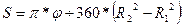 где R – глубина зоны загрязнения, φ – угол в зависимости от скорости ветра на время аварии из таблицы (Б 8, приложения). Площадь зоны загрязнения № 2 определяется по формуле площади части кольца, км2: