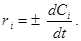 Выражения (3) и (4) является строгими определениями скоростей реакций, справедливыми и для системы переменного объема.На практике часто пользуются более простым уравнением, пригодным для реакции в системе постоянного объема. Так как отношение Ni / V равно концентрации вещества C i, то при постоянном объеме