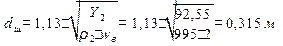 Принимаю dмтрш1 = 500 мм. Уточненное значение скорости во входном штуцере составит: