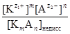 Вещества, растворы или расплавы которых проводят электрический ток, называются электролитами. К ним относятся кислоты, основания и подавляющее большинство солей. При попадании этих веществ в полярный растворитель происходит электролитическая диссоциация, вызываемая взаимодействием полярных молекул растворителя с частицами растворяемого вещества. Результатом является образование сольватированных заряженных частиц - положительно заряженных катионов и отрицательно заряженных анионов. Электролитическая диссоциация HCl (газ) + (n + m)H2O D H+× n H2O + Cl-× m H2O, NaCl (крист) + (p + q)H2O D Na+× p H2O + Cl-× q H2O. Количественной характеристикой электролитической диссоциации служит степень диссоциации a, равная отношению числа диссоциированных молекул N дисс к исходному числу молекул электролита в растворе N исх: a = По способности к электролитической диссоциации электролиты условно подразделяют на сильные и слабые. Сильные электролиты -вещества, в растворе практически полностью диссоциированные на ионы при (a» 1). Слабые электролиты -вещества, степень диссоциации которых a < < 1. В водных растворах сильными электролитами являются такие кислоты, как HClO4, HMnO4, H2SO4, HNO3, HCl, HBr, HI, а также гидроксиды щелочных и щелочно-земельных металлов LiOH, NaOH, KOH, RbOH, CsOH, Ca(OH)2, Sr(OH)2, Ba(OH)2; большинство солей Для процесса электролитической диссоциации К m А n D m где К m А n – молекула электролита, Кд, с = где [ Kд, а = Согласно уравнению изобары химической реакции: