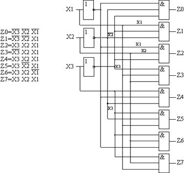 Как следует из таблицы состояний, каждой функции соответствует только один разряд в выходном коде, следовательно, не требуется минимизировать эти функции (рис. 2.1).