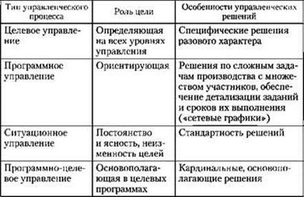 Отрасль экономики-совокупность предприятий и произодств, обладающих общностью произвоимойпродукции, технологии и удовлетворенных потребностей (ОЭ-аналогичный или конкурирующий товар). Классификация отраслей- установленный перечень отраслей, для сопоставления показателей планирования, учета и анализа. По видовому признаку отрасли делятся: 1)Первичные- отрасле-добывающая промышленность 2)Вторичные – обрабатывающая промышленность 3)Отрасли инфраструктуры – жил.строй, транспорт, торговля, здравоохранение 4)Отрасли управления и наука Производственная сфера (сфера материального производства) экономики создает материальные блага, товары и оказывает хозяйственные услуги производственного назначения, то есть для других предприятий. В нее входит: промышленность, с/х, транспорт, связь, строительство, торговля. Непроизводственная сфера экономики оказывает услуги населению, то есть перераспределяет созданный в производстве национальный доход. В нее входят: жил.ком.хоз-во, быт-обслуживание, здравоохранение, соц.обеспечение, образование, культура, искусство, наука, страхование, пенсия. Экономическое назначение производимой продукции является наиболее важным принципом классификации отраслей. В соответствии с этим принципом промышленность делится на отрасли, производящие средства производства (группа А) и отрасли, производящие предметы потребления (группа Б). По целевому назначению производимой продукции, общности исходного сырья и родственности применяемых технологий в промышленности выделяется 16 комплексных отраслей, представляющих по существу крупные группы отраслей промышленности: 1.Электроэнергетика (7 отраслей); 2. Топливная промышленность (16 отраслей); 3. Черная металлургия (11 отраслей); 4. цветная металлургия (36 отраслей); 5. Химическая и нефтехимическая промышленность (32 отрасли); 6. Машиностроение и металлообработка (136 отраслей); 7. Лесная, деревообрабатывающая и целлюлозно-бумажная промышленность (19 отраслей); 8. Промышленность строительных материалов (32 отрасли); 9. Легкая промышленность (48 отраслей); 10. Пищевая промышленность (34 отрасли); 11. Полиграфическая промышленность; 12. Другие отрасли промышленности. В настоящее время отрасли производственной сферы объединены в межотраслевые комплексы, которые представляют собой интегрированную систему отдельных отраслей, объединенных общей целью в удовлетворении потребностей народного хозяйства в определенном виде продукции. 1.Топливно-энергетический; (ОКОХН-общерос.классификатор отраслей народ.хоз.) 2. Металлургический; (ОКВЭД-общерос.классиф.по видам дея-ти хоз-щих субъектов) 3. Машиностроительный; 4. Химико-лесной; 5. Агропромышленный; 6. Социальный (производство товаров народного потребления и легкой промышленности); 7. Строительный. 3. Методы анализа производственной среды, целевая ориентация управленческих решений. Постоянные изменения на рынке вызывают необходимость постановки новых целей, а следовательно их осуществления, что отражается на характере управленческого процесса. В связи с этим выделяются различные типы управленческого процесса (табл. 5.1), хотя строгого их соблюдения на практике может и не быть.