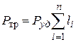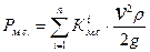 где Pуд – удельные потери на трение на 1 погонный метр воздуховодов (Pуд можно определить по [1, 3] в зависимости от скорости воздуха и диаметра воздуховода), Па/м; li – длина каждого участка воздуховода, м. Для приведенной схемы