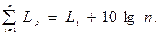 Суммарный уровень звуковой мощности (дБ) при одновременной работе нескольких источников разной звуковой мощности можно определить по формуле: