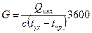 eпр – приведенная степень черноты источника излуче-ния и стального листа экрана; j – угловой коэффициент, учитывающий взаимное расположение источника излучения и объекта облу-чения (т.е. экрана). Для условий установки экрана на стенке оборудования можно принять j = 1; Tи – темп.-ра источника излучения с учетом ее воз-растания при экраниро-вании на 20-30%, К; Tи =1, 25× tи + 273, К, где tи – температура источника из-лучения до установки экра-на, °С; Tэ – температура экрана, К. Tэ£ 35+273 =308 К. Приве-денная степень черноты равна где eи – степень черноты источника излучения (горя-чей стенки); eэ – степень черноты сталь-ного листа экрана. Qв = G× c× (tух - tпр), где G – весовой расход воды на экране, кг/с; с – теплоемкость воды (с = 4, 19 кДж/(кг× К)); tух – температура уходящей воды (не более 35°С); tпр – температура воды на входе в экран (в теплый период года tпр принимают 25-29°С). Необходимый весовой рас-ход воды равен