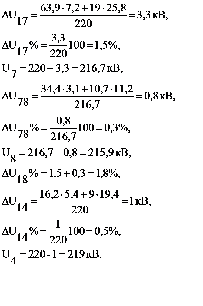 Рассчитаются потери напряжения участков линии с учетом, что напряжение на шинах источника питания при аварийных нагрузках-1Uн
