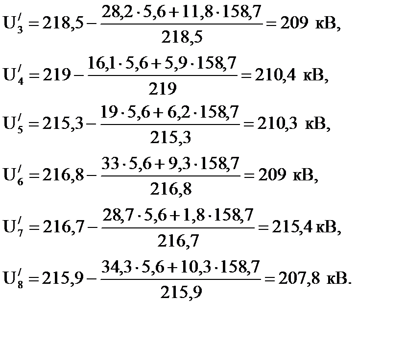 где Ui' -напряжение на шинах НН i-го пункта, приведенное к стороне ВН, кВ, Uхх = 11кВ – напряжение холостого хода трансформатора, кВ, Uжел = 10, 4кВ – желаемое напряжение на стороне НН, кВ. Определяется напряжение на шинах НН i-го пункта, приведенное к стороне ВН по формуле: