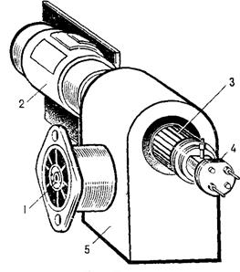 Автоматизированные форсунки (рис. 28) являются унифицированными агрегатами, у которых в общем корпусе 5 смонтированы форсунка 1, топливный насос 4, вентилятор 3, электродвигатель 2, фоторезистор и электроды зажигания.
