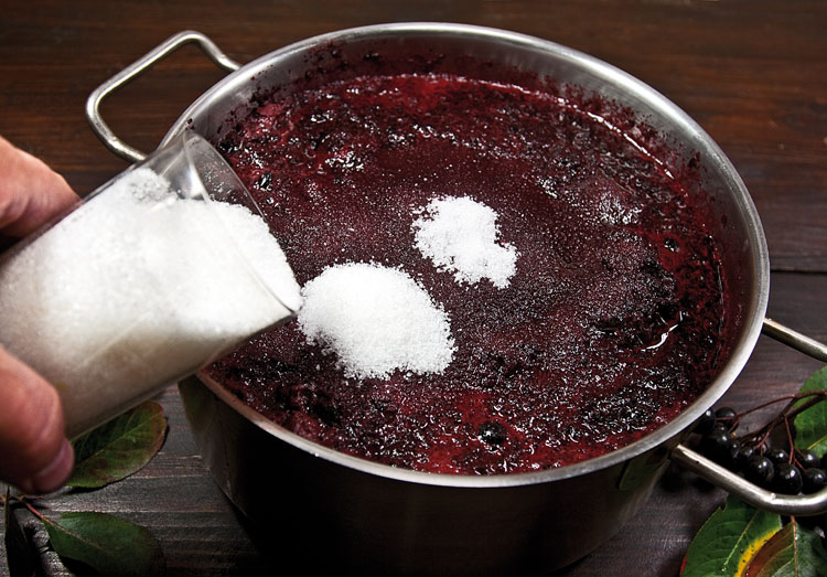 Передавив ягоды, добавим на них сахар - из расчета примерно полстакана на килограмм. Пропорции эти можно уменьшать или увеличивать, в зависимости от того, какое вино мы хотим получить. Абсолютно сухое вино, без сахара, из черноплодки получается неважнецкое – кисловатое и терпкое, поскольку в самих плодах сахара маловато. К тому же процесс брожения без наличия " сладкой смерти" идет очень медленно. Из большого количества сахара получается сладкое вино – тоже на любителя. Предлагаемые мною пропорции ориентированы на вино десертное, - на мой взгляд и вкус, то, что надо.