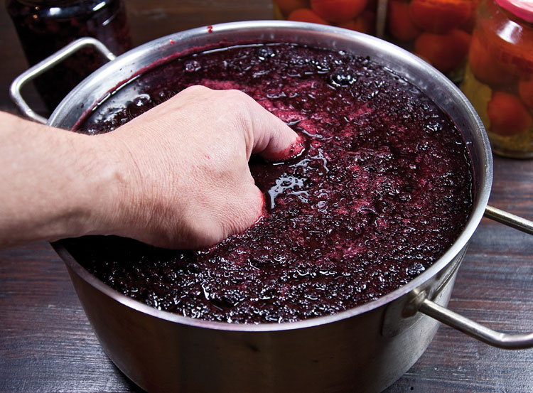 Что ж, теперь нужно немного поработать обеими руками, выбирая мезгу из сока и отжимая ее, сколько есть сил. Пользоваться соковыжималками и прочими устройствами, кроме пресса, которого у вас нет, не советую. Соковыжималка будет забита после второй же горсти, а выход сока окажется незначительным.