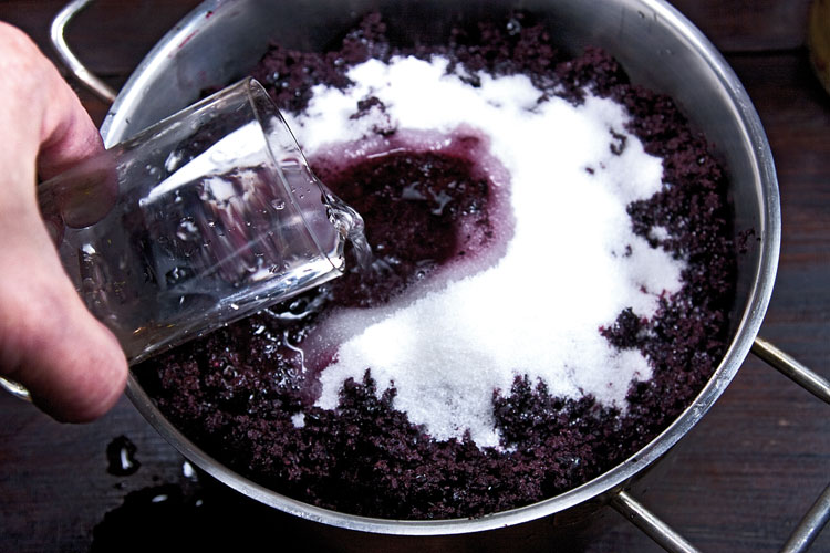 NB! Воде при приготовлении плодово-ягодных вин, помимо упомянутого, принадлежит еще одна важная роль - только с ее помощью можно отрегулировать кислотность будущего напитка - так, чтобы он не сводил скулы от избытка кислого. Ничем иным этот параметр плодово-ягодного вина не регулируется. Итак, на образовавшееся количество мезги добавляем примерно стакан сахара и вливаем чуть более литра воды (исходя из первоначальных 10-12 килограммов ягод). К качеству воды нужно подходить избирательно: водопроводная для этих целей не подходит. Лучше использовать проверенную бутилированную воду или воду из колодца. И, конечно, холодную.