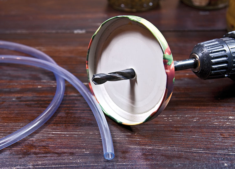 Саму трубку следует затем продернуть через отверстие в крышке и чем-нибудь подходящим прогреть кончик трубки, таким образом, увеличив её диаметр, чтобы она плотно сидела в отверстии.