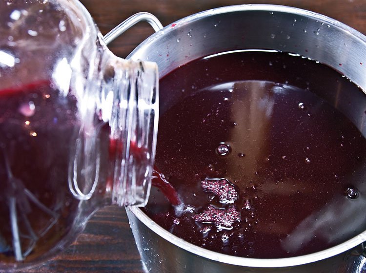 Процеженный сок выливаем в подходящую стеклянную посуду. Коль скоро за отправную точку мы взяли 10-12 кг ягод, двух пятилитровых банок нам хватит за глаза.
