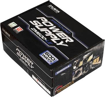 На коробке приведено несколько изображений блока, его краткое описание и таблица мощностных характеристик. Надежность упаковки невысока, здесь нет никаких дополнительных смягчающих элементов, корпус БП даже не помещен в «пупырчатый» пакет.