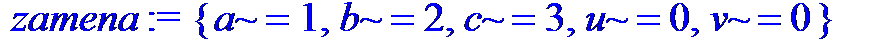 > zamena: ={a=1, b=2, c=3, u=0, v=0};