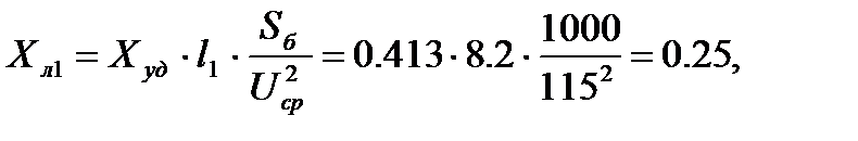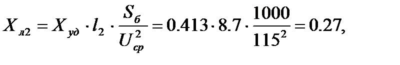 где Xуд – индуктивное сопротивление линии на 1 км длины, Ом/км; l –длина линии, км; Uср – среднее напряжение в месте установки данного элемента, кВ.
